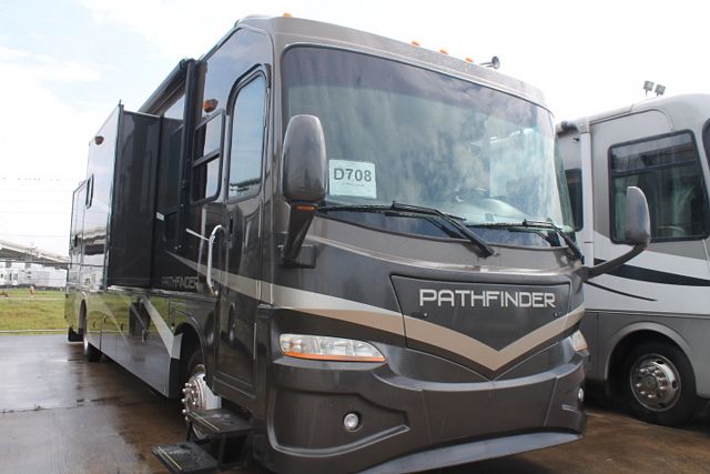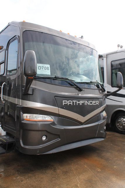 Get and Go Traveling in This 2007 Coachmen Pathfinder. It is loaded with comforts that include....300hp Cummins Engine On a Freightliner Chassis, Air Bag Suspension, 3 Slide-outs, Onan Diesel Generator, 2 Ducted Roof A/Cs, Levelers, Double Door Refrigerator With Ice Maker, Main & Slide Awnings, Washer/Dryer Connections, Backup Camera, CD Radio, 2 TVs, DVD Player, Portable Satellite, Outside Shower, Convection Microwave and 3 Burner Range. Enjoy your travels no matter the destination.