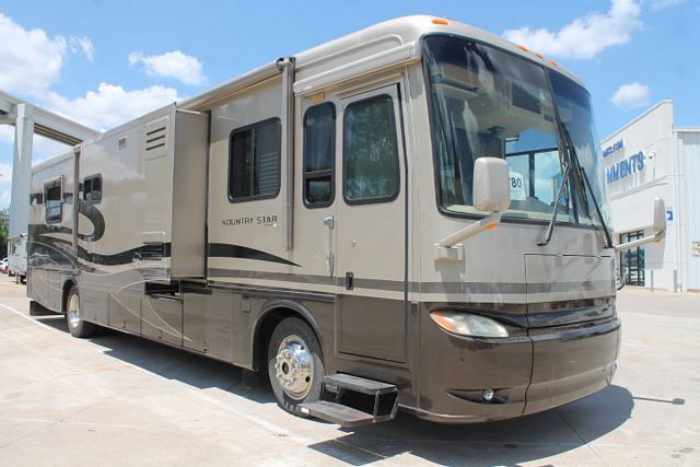 Enjoy your travels in This 2005 Kountry Star By Newmar. has a 330hp Cummins Engine On a Spartan MOUNTAIN MASTER Chassis, Air Bag Suspension, Exhaust Brake, 3 Slide-outs, Onan Diesel Generator, 2 Ducted Roof A/Cs, Levelers, Four Door Refrigerator, In-Fridge Ice Maker, Main & Slide Awnings, 1 Piece Washer/Dryer, Backup Camera, CD Radio, Heated Tanks, Satellite Dish, 2 TVs, DVD Player, Outside Shower, Convection Microwave and 3 Burner Range.