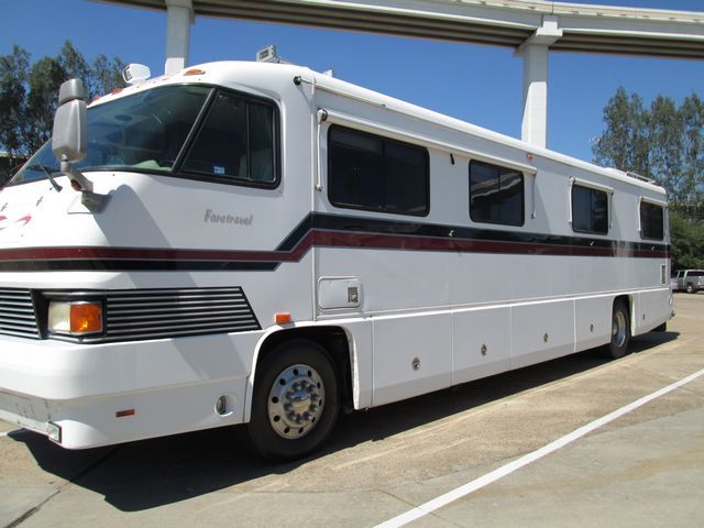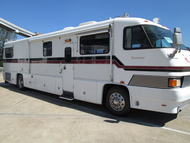 This 1994 Foretravel Unihome has a 300hp 8.3 Cummins Engine, Features include.... Air Bag Suspension, Exhaust Brake, Power Tech Diesel Generator, 2 Ducted Roof A/Cs, Levelers, Double Door Refrigerator, Main & Window Awnings, Cassette Radio, Inverter, Satellite Dish & Receiver, TV, DVD Player, Convection Microwave, 4 Burner Range and Oven. Unlike other manufacturer's models, the leveling of this coach is all done with air bags and not leveling jacks. Just flick a switch and it is all done automatically for you from inside the coach. Or just let the coach level itself while you connects up to 50 amp power, to fresh water, and to the sewer connection. When you get back in the coach, it's all done for you. With this coach you have privacy to the master bedroom without going through the bathroom. Privacy while not inconveniencing others. Six slide out drawers (three full size) in the the basement, allowing eash access to items stored underneath. Well Maintained and It Shows!