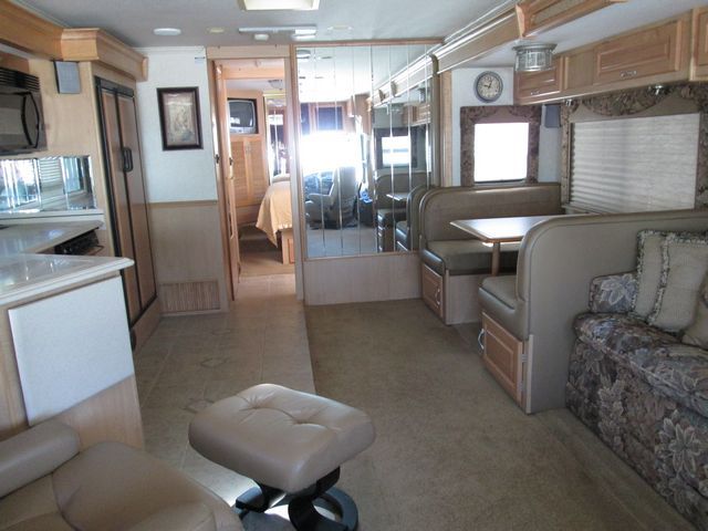This 2004 Tropical By National RV has a 350hp Cat Engine On a Freightliner Chassis, Features include....Air Bag Suspension, Exhaust Brake, 3 Slide-outs, Onan Diesel Generator, 2 Ducted Roof A/Cs, Levelers, Double Door Refrigerator with Ice Maker, Main & Slide Awnings, Washer/Dryer Connections, Backup Camera, CD Radio, Heated Tanks, Satellite Dish, TV, DVD Player, Microwave and 3 Burner Range. Enjoy your travels no matter the destination.