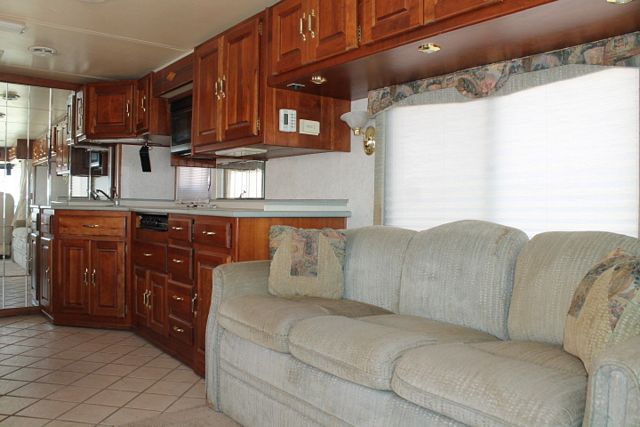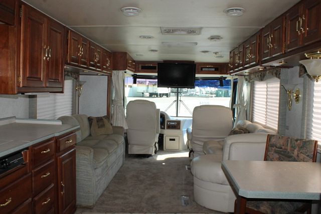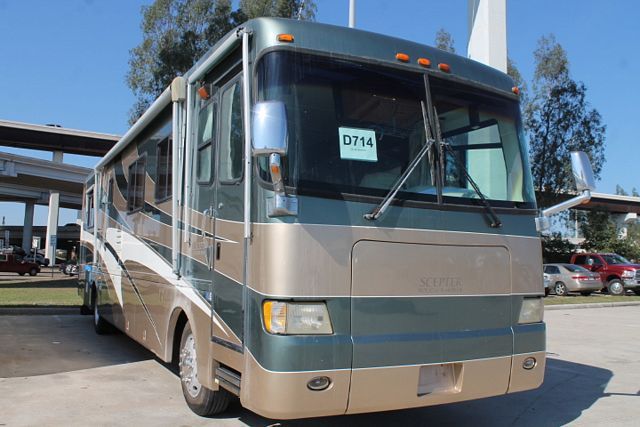 This 2001 Scepter has a 330hp Cummins Engine On a Roadmaster Chassis, Comforts include....Air Bag Suspension, Exhaust Brake, 2 Slide-outs, Onan Diesel Generator, 2 Roof A/Cs, Levelers, Four Door Refrigerator with Ice Maker, Main Awning, 1 Piece Washer/Dryer, Backup Camera, CD Radio, Satellite Dish & Receiver, 2 TVs, DVD Player, Outside Shower, Convection Microwave and 3 Burner Range. Spend quailty time together Traveling this beautiful country. Go Rving!