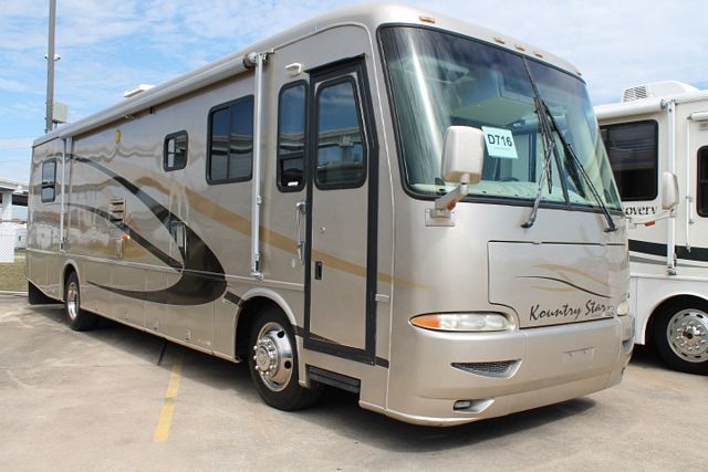 This 2003 Kountry Star By Newmar has a 330hp Cat Engine On a Freightliner Chassis, Comforts include....Air Bag Suspension, Exhaust Brake, Inverter, 2 Slide-outs, Onan Diesel Generator, 2 Ducted Roof A/Cs, Levelers, Double Door Refrigerator, Main & Slide Awnings, Washer/Dryer Connections, Backup Camera, CD Radio, Heated Tanks, Satellite Dish, 2 TVs, Satellite Radio, Outside Shower, Convection Microwave and 3 Burner Range. Enjoy great adventures in this Newmar.