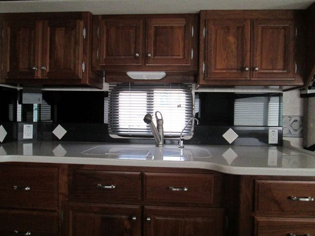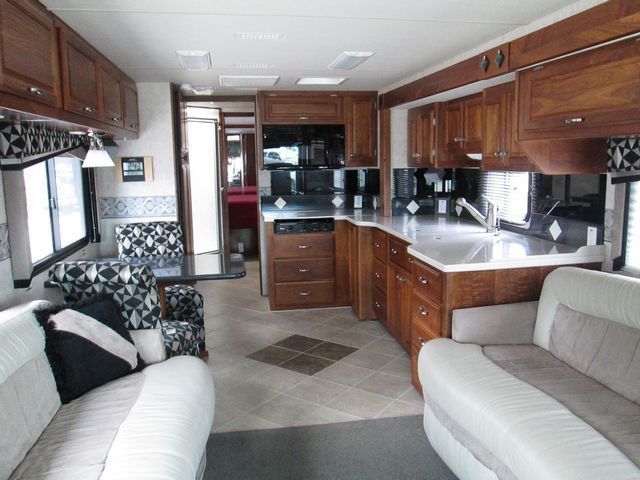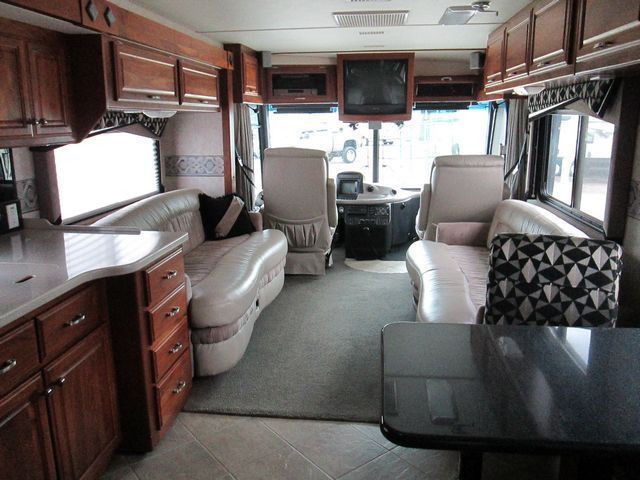 Sharp Looking Rig! This Well Maintained 2003 Revolution By Fleetwood has been stored enclosed all of it's life. It is powered by a 350Hp Cummins Engine On a Freightliner Chassis, Amenities include....Air Bag Suspension, Exhaust Brake, 2 Slide-outs,7500 Watt Onan Diesel Generator, 2 Ducted Air Conditioners, Levelers, 4 Door Gas Refrigerator with Ice Maker, Automatic Main Awning And Door, Window/Slide Awnings, 1 Piece Washer/Dryer, Backup Camera, CD Radio, 2000 Watt Inverter, Heated Tanks, Satellite Dish, 2 TVs, DVD Player, Outside Shower, Convection Microwave, 3 Burner Range. You will never miss home while on the road traveling in the comforts of this Revolution.