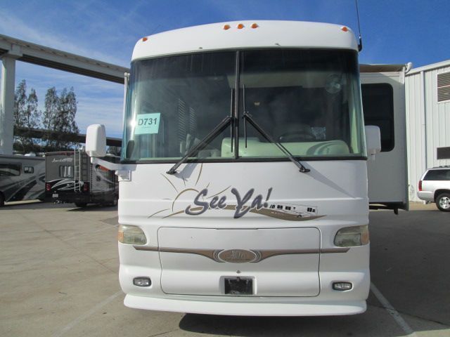 This 2005 See Ya was design with traveling in mind. It has a 350Hp Cat Engine On a Freightliner Chassis, It's Features include....Air Bag Suspension, Exhaust Brake, 2 Slide-outs, 7500Watt Generac Diesel Generator, Basement A/C, Levelers, 4 Door Gas/110V Norcold Refrigerator with Ice Maker, Automatic Main Awning And Slide/Door Awnings, 1 Piece Washer/Dryer, Backup Camera, CD Radio, 2000 Watt Inverter, Satellite Dish and Receiver, Heated Tanks, 2 TVs, DVD Player, Outside Shower, Convection Microwave, 3 Burner Range and Oven. Hit the open highway to some wonderful adventures.