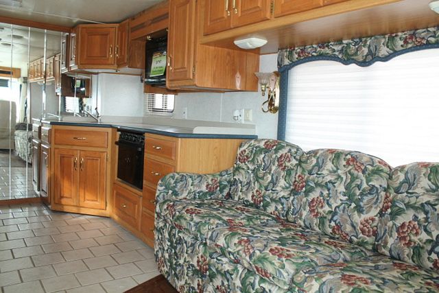 This 2001 Holiday Rambler Endeavor has plenty of comforts for all of your travels. It is powered by a 330Hp Cummins Engine On a Roadmaster Chassis, Features include... Air Bag Suspension, Exhaust Brake, 2 Slide-outs, 7500W Onan Diesel Generator, 2 Non-Ducted And 3 Ducted Air Conditioners, Levelers, 4 Door Gas/110V Refrigerator, with Ice Maker, Main/Slide/Door Awnings, 1 Piece Washer/Dryer, Backup Camera, CD Radio, Inverter, Satellite Dish, 2 TVs, Satellite Radio, Microwave, 3 Burner Range and Oven. Hit the highway to your favorite spot.