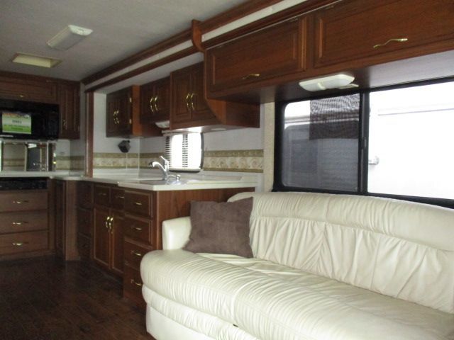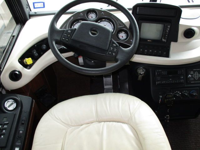 You will never miss home while traveling in This 2002 Revolution By Fleetwood. It's Powered by a 330Hp Cummins Engine On a Freightliner Chassis, Comforts include....Air Bag Suspension, Exhaust Brake, 2 Slide-outs, Onan Diesel Generator, 2 Ducted Air Conditioners, 110V Residential 3 Door Refrigerator with Ice Maker, Main/Window/Slide Awnings, 1 Piece Washer/Dryer, Backup Camera, Heated Tanks, 3 TVs, Outside Shower, Convection Microwave, 3 Burner Range, Leather Sofa's and Beautiful Wood Cabinets with Plenty of Storage Space. Bonus: Includes an Outside Entertainment System.