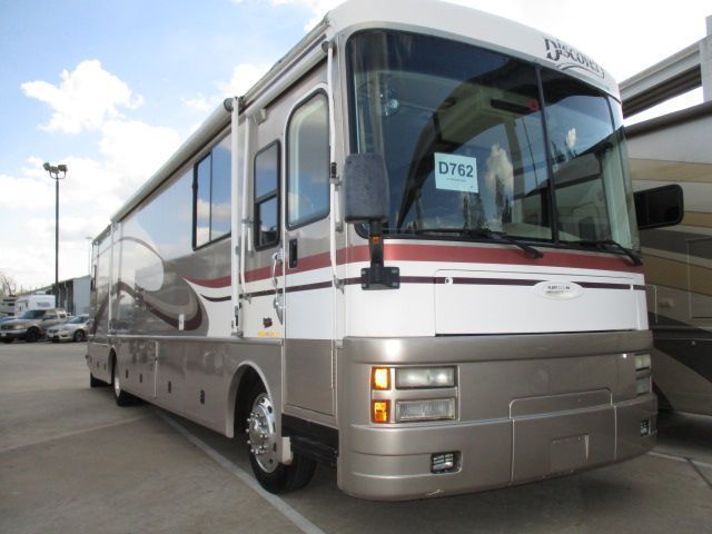Clean, Well Maintained 2000 Discovery By Fleetwood has a 275Hp Cummins Engine with Bank Upgrade On a Freightliner Chassis, Options include....Air Bag Suspension, Exhaust Brake, 2 Slide-outs, Onan Diesel Generator, 2 Ducted Air Conditioners, Levelers, Double Door Gas/110V Refrigerator with Ice Maker, Main/Slide Awnings, 1 Piece Washer/Dryer, Backup Camera, CD Radio, Inverter, Heated Tanks, 2 TVs, Outside Shower, Convection Microwave and 3 Burner Range. Enjoy the wonderful views of the Open Road. Go Traveling!