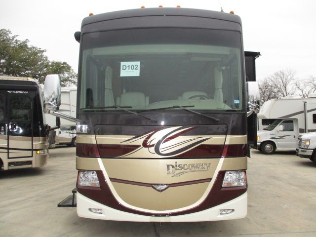 This 2013 Discovery has a 380Hp 8.3 Isc Cummins Engine on a Freightliner chassis. Amenities include.....Air Bag Suspension, Exhaust Brake, 3 Slide-outs, Onan Diesel Generator, 3 Ducted Air Conditioners, Levelers, 110V Residential Refrigerator, In-Fridge Ice Maker, Automatic Main Awning And Window/Slide Awnings, Washer/Dryer, Backup Camera, CD Radio, Solar Panel, Magnum 2800 Pure Sine Wave Inverter, In-Motion Satellite System, Outside Entertainment System, 4 TVs, 3 DVD Players, Satellite Radio, Outside Shower, Convection Microwave, 3 Burner Range, Central Vacuum, Tire Pressure Monitor and Safety Plus Steering. A Well Maintained Beautiful Rig!