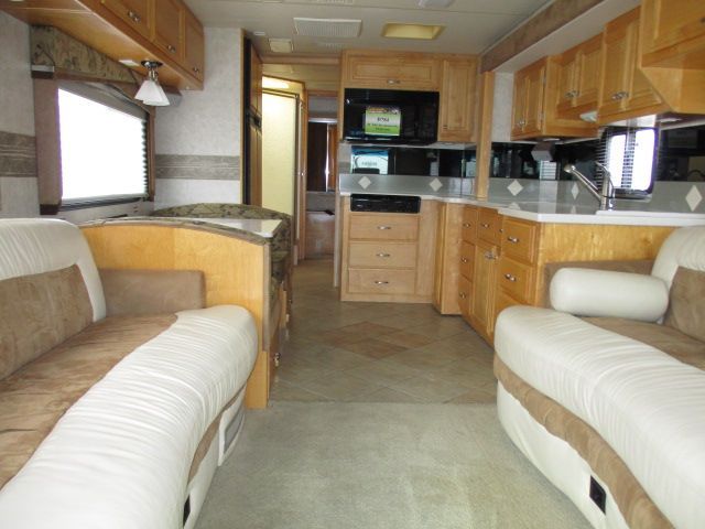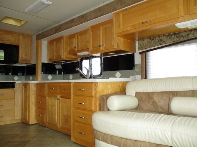 Travel the USA! This 2003 Revolution By Fleetwood has a plenty of comforts for all of your traveling needs. It's powered by 350Hp Cummins Engine On a Freightliner Chassis, Amenities include....Air Bag Suspension, Exhaust Brake, 2 Slide-outs, Onan Diesel Generator, 2 Ducted Air Conditioners, Levelers, Inverter, 4 Door Gas/110V Refrigerator with Ice Maker, Automatic Main Awning And Window/Slide Awnings, 1 Piece Washer/Dryer, Backup Camera, CD Radio, Heated Tanks, Outside Entertainment(Speakers with Tv Hook-up), 2 TVs, DVD Player, Convection Microwave and 3 Burner Range. Your cross country adventures are sure to be a pleasure in This Revolution.
