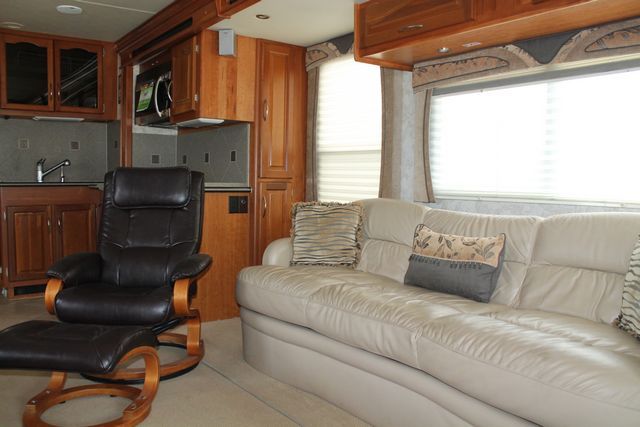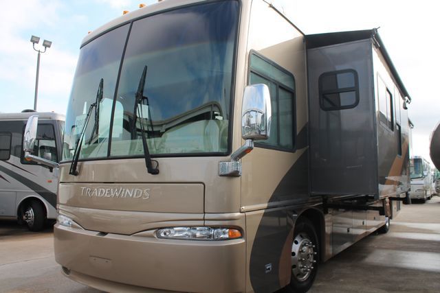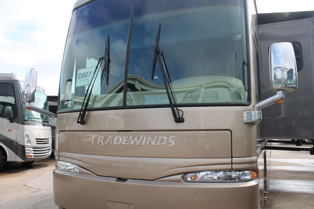 This 2006 Tradewinds By National RV has a open living layout with plenty of space. It's powered by a 400Hp Cummins Engine On a Freightliner Chassis, Comforts include....Air Bag Suspension, Exhaust Brake, 4 Slide-outs, Onan Diesel Generator, Basement A/C, Levelers, Diswasher, 4 Door Gas/110V Refrigerator with Ice Maker, Main Awning, 1 Piece Washer/Dryer, Backup Camera, CD Radio, Inverter, 2 TVs, DVD Player, Outside Shower, Convection Microwave and 3 Burner Range. Go Traveling and the wonderful enjoy the views.