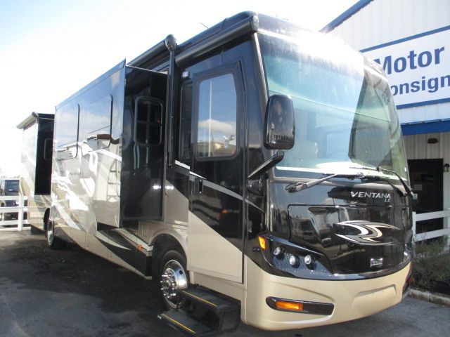 This 2015 Ventana Le has a Bath & Half Floor Plan and is Powered by a 340Hp Cummins Engine On a Freightliner Chassis, Amenities Include....Air Bag Suspension, Exhaust Brake, 3 Slide-outs, Onan Diesel Generator, 2 Ducted Air Conditioners with Heat Pumps, Levelers, 3 Door 110V Refrigerator with Ice Maker and Water Dispenser, Automatic Main Awning And Slide Awning, Back-up and Side View Camera System, 2 Piece Washer/Dryer, CD Radio, Solar Panel, Inverter, 3 TVs, 2 DVD Players, Satellite Radio, Outside Shower, Microwave/Convection Oven, 3 Burner Range and LED lighting. Enjoy your Travels in this Luxury Motorhome. Let's Go RVing!
