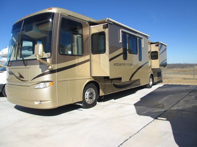 This 2006 Kountry Star By Newmar Has A 350Hp Cummins Engine On A Spartan Chassis, Options Include... Air Bag Suspension, Exhaust Brake, 4 Slide-Outs, Onan Diesel Generator, 2 Ducted Air Conditioners, Levelers, Double Door Gas/110V Norcold Refrigerator, Automatic Main Awning, Washer/Dryer, Backup Camera, CD Radio, Inverter, Heated Tanks, Satellite Dish & Receiver, 3 TVs, 2 DVD Players, Outside Shower, Microwave, And 3 Burner Range. Your Cross Country Adventures Will Be Memorable While Traveling With This Kountry Star By Newmar. Let's Hit The Road And Make Some Memories!