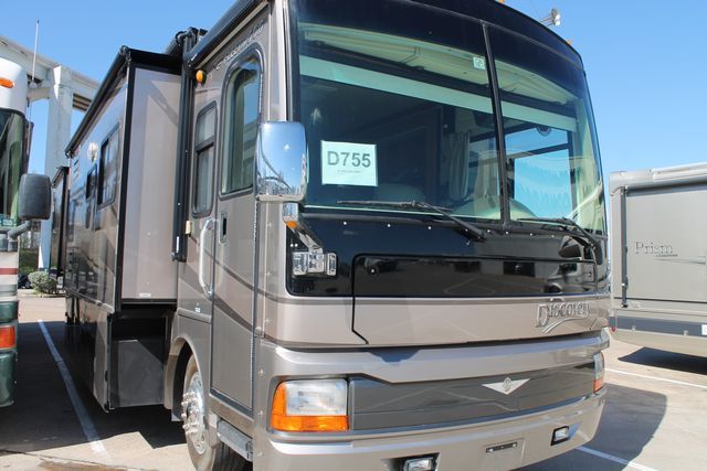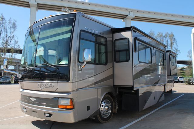 This 2004 Discovery By Fleetwood could be your next home. It has 330Hp Caterpillar Engine On a Freightliner Chassis, Comforts include....Air Bag Suspension, Exhaust Brake, 4 Slide-outs, Onan Diesel Generator, 2 Ducted Air Conditioners with Heat Pump, Solar Battery Charger, Levelers, Side by Side 110V Residential Refrigerator with Ice Maker, Power Main Awning with Window/Slide Awnings, Central Vacuum, 1 Piece Washer/Dryer, Backup Camera, Solar Panel, CD Radio, 2000w Inverter, Travelers Satellite System with Auto Seek, (Dishwasher), Heated Tanks, Outside Entertainment System, 3 TVs, DVD Player, Outside Shower, Convection Microwave and 3 Burner Range. Upgrades include. Full Body Paint, Deluxe Cabinetry, Tile in Bathroom/Kitchen and Blue Ox Tow Bar for added Convinence and so much more.