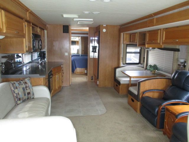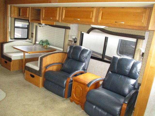 This 2006 Discovery By Fleetwood has a 330Hp Caterpillar Engine On a Freightliner Chassis, Air Bag Suspension, Exhaust Brake, 3 Slide-outs, Onan Diesel Generator, 2 Ducted Air Conditioners, Levelers, 4 Door Gas/110V Norcold Refrigerator, In-Fridge Ice Maker, Automatic Main Awning And Slide Awning, Washer/Dryer, Backup Camera, CD Radio, Inverter, Satellite Dish, 2 TVs, 2 DVD Players, Outside Shower, Microwave, 3 Burner Range, Oven and updated carpet, dinette upholstry plus window cornices. Enjoy the journey to your next destination in luxury. Let's go RVing!