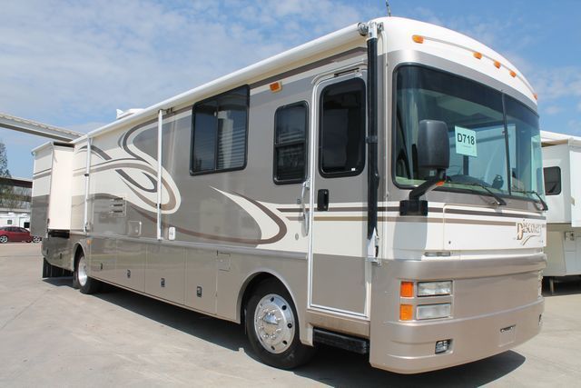 Garage Kept, Well Maintained 1999 Discovery By Fleetwood could be your next home. It has a 275Hp Cummins Engine On a Freightliner Chassis, Features include....Air Bag Suspension, Exhaust Brake, 2 Slide-outs, Onan Diesel Generator, 2 Ducted Air Conditioners, Levelers, Side by Side Gas/110V Refrigerator with Ice Maker, Main/Window/Slide Awnings, 1 Piece Washer/Dryer, Backup Camera, Inverter, Satellite Dish & Receiver, 2 TVs, Convection Microwave and 3 Burner Range. Bonus: New Tires, New Batteries, New Inverter/Converter, New Flat screen Tv, New Mattress, New Foam in Dinette seats and so much more.