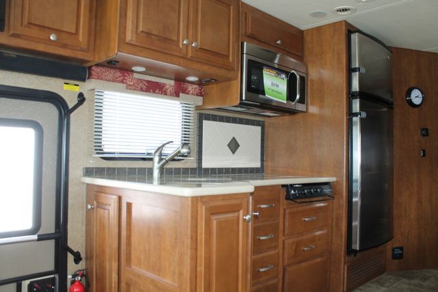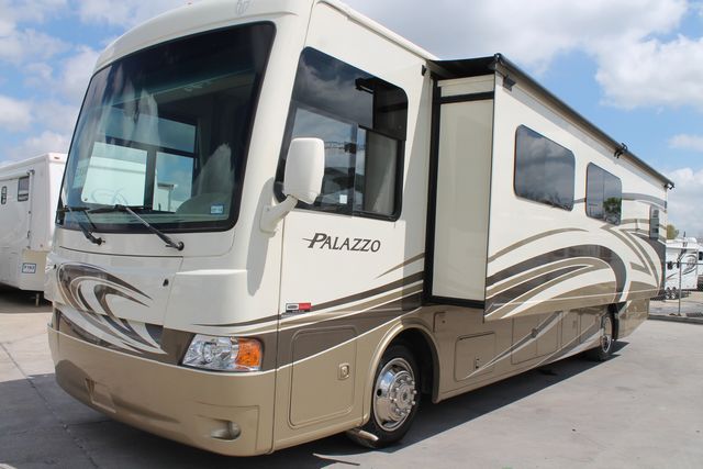 This 2014 Palazzo has a Bath & Half, Open Living floor plan with sleeping for 8. It's Powered by 300Hp Cummins Engine On a Freightliner Chassis, Comforts include.... Air Bag Suspension, Exhaust Brake, 2 Slide-outs, Onan Diesel Generator, 2 Ducted Air Conditioners, Levelers, Double Door 110V Residential Refrigerator with Ice Maker, Power Main Awning And Slide Awning, 2 Piece Washer/Dryer, Backup Camera, 2000w Inverter, 3 TVs, DVD Player, Outside Shower, Convection Microwave and 3 Burner Range. Bonus: includes an Outside Entertainment System,