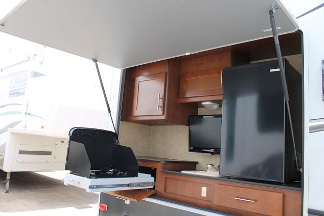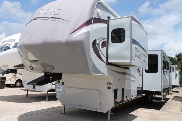 This 2012 Komfort Bunkhouse Bath And 1/2 By Dutchmen Sleeps Up To 8 With Plenty Of Space, It's Options Include....Electric Landing Gear, 3 Slide-outs, 2 Ducted Roof A/Cs, Double Door Refrigerator, Main Awning, Washer/Dryer Connections, AM/FM/CD Radio, 4 TVs, DVD Player, Outside Shower, Convection Microwave, 3 Burner Range And Oven. Sleep Number Mattres On Queen, Exterior Compartment Locks, Tv Stand Added To Ouitside Compartment Also. Includes A Complete Outdoor Kitchen With Entertainment Center For Hours Of Outside Emjoyment.