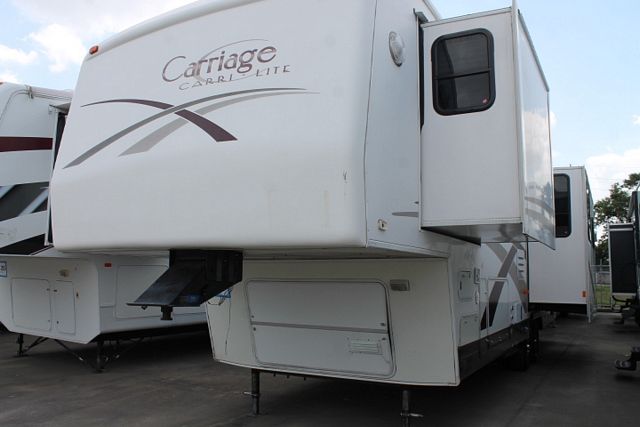 This 2003 Carri-Lite By Carriage Is Ready To Hit The Road And Is Perfect For Any Adventure. It's Features Include....3 Slide-outs, 1 Ducted Roof A/C, Double Door Refrigerator, Main Awning, Washer/Dryer Connections, AM/FM/CD Radio, 2 TVs, DVD Player, Outside Shower, Microwave, 3 Burner Range And Oven. Includes Slide-out Tray In Lower Compartment For Added Storage With Easy Access.