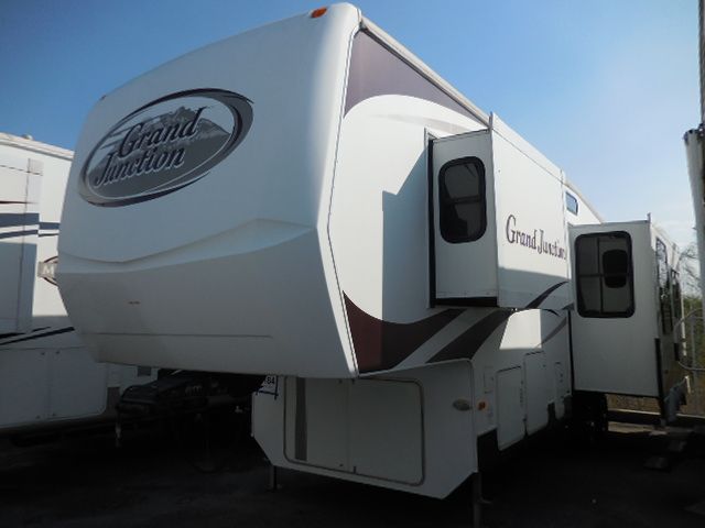 This 2007 Grand Junction has an Electric Landing Gear, 2 Slide-outs, 2 Ducted Roof A/Cs, Double Door Refrigerator, Main Awning, Washer/Dryer Connections, CD Radio, TV, DVD Player, Outside Shower, Convection Microwave, 3 Burner Range, Oven, Open floor plan.