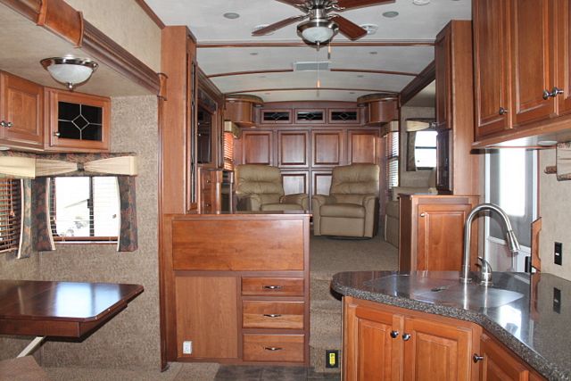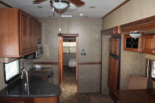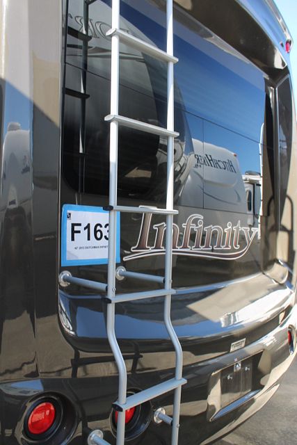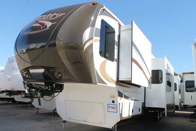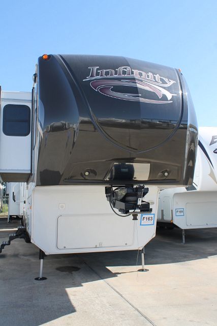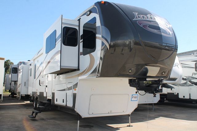 A Must See! This 2013 Infinity by Dutchmen has great floor plan with front living space, Comforts include....Automatic 6 Point Hydraulic/Electric Landing Gear, 5 Slide-outs, 2 Ducted Roof A/C, Four Door Refrigerator, Main Awning, Washer/Dryer Connections, Outside Speakers, 2 TVs, DVD Player, Outside Shower, Convection Microwave, 3 Burner Range and Oven. Loaded with Comforts including a Fireplace and Central Vacuum. It also has a large Walk In Shower with corner seat and a King Size Bed for a great nights rest.