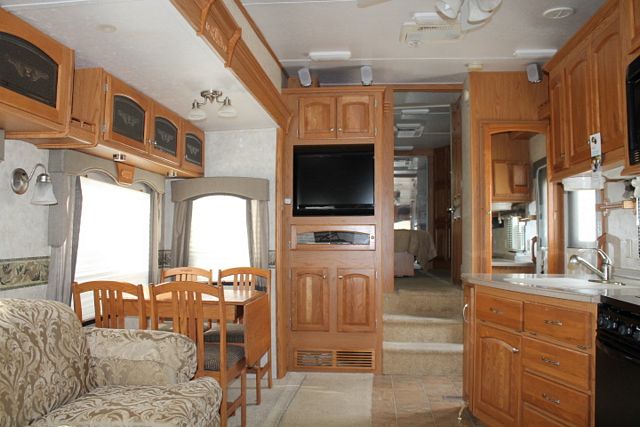 This 2006 Big Horn by Heartland nice floor plan with all the comforts, Comforts include....Electric Landing Gear, 2 Slide-outs, 2 Ducted Roof A/Cs, Double Door Refrigerator, Automatic Main Awning with Wind Sensor, Washer/Dryer Connections, Master Surge Protector Hardwired In, CD Radio, Heated Tanks, HDTV, DVD Player, Outside Shower, Microwave, 3 Burner Range and Oven. Get out and enjoy the great outdoor.