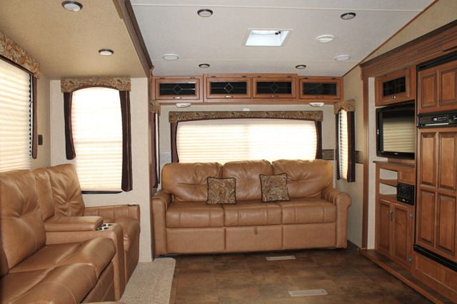 Well Maintainted 2013 Cruiser Patriot Bunkhouse By Crossroads has a unique floor plan with some really nice features that include....Trail Air Suspension and Pin Box, Electric Landing Gear, 4 Slide-outs, 2 Ducted Roof A/Cs, Double Door Refrigerator, Main Awning, Washer/Dryer Connections, CD Radio, Heated Tank (Polar Package) Outside Speakers, TV, DVD Player, Outside Shower, Microwave, 3 Burner Range and Oven. A must see 5th wheel!