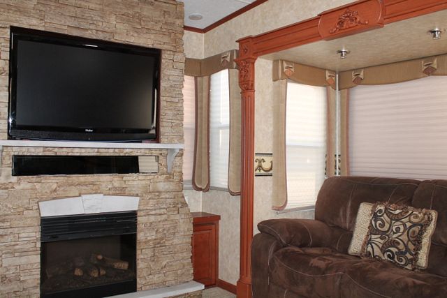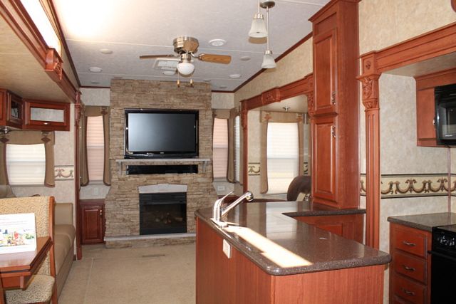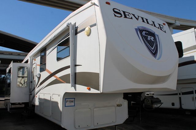 This 2010 Seville By Crossroads has all the comforts, Features include....Electric Landing Gear, 4 Slide-outs, 2 Ducted Roof A/Cs, 4 Door Refrigerator, Main Awning, Washer/Dryer, CD Radio, 2 TVs, DVD Player, Outside Shower, Convection Microwave, 3 Burner Range and Oven. Nice 5th wheel for full time living with added comforts that include a Fireplace, Central Vacuum and Heated Tanks. Get out and go traveling.