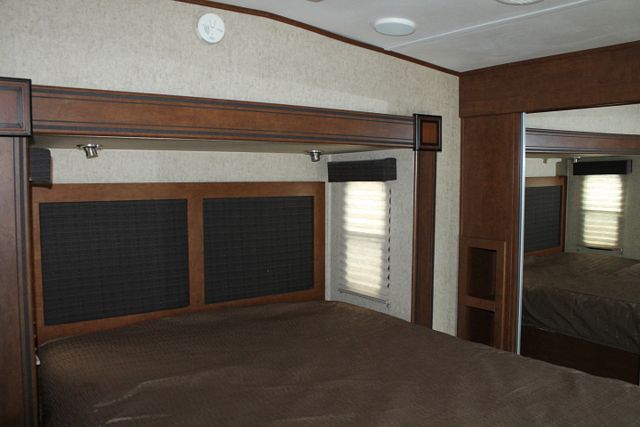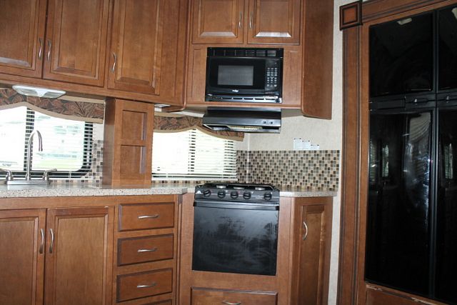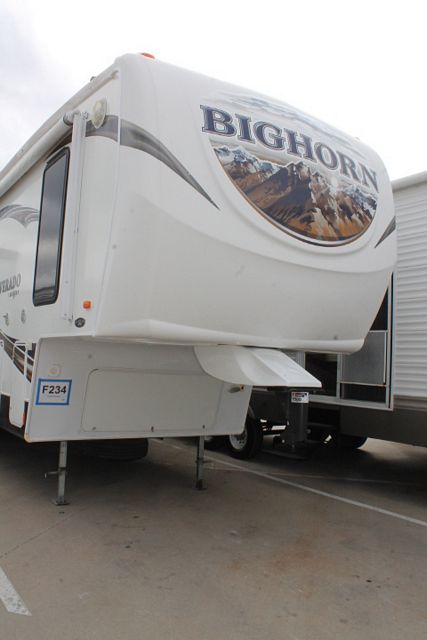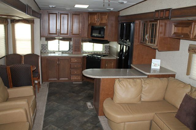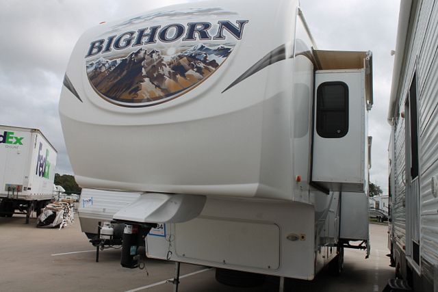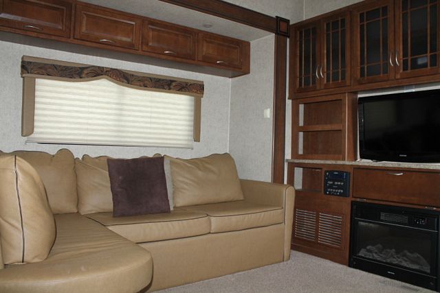 This 2013 Bighorn Silverado By Heartland has a nice rear kitchen floor plan and a very comfortable living space. It's features include.... Electric Landing Gear, 3 Slide-outs, 2 Roof A/Cs, Four Door Refrigerator, Main & Slide Awnings, Washer/Dryer Connections, CD Radio, Outside Speakers, TV, DVD Player, Microwave, 3 Burner Range and Oven. Also Includes a cozy Fireplace. Makes a great couples retreat.