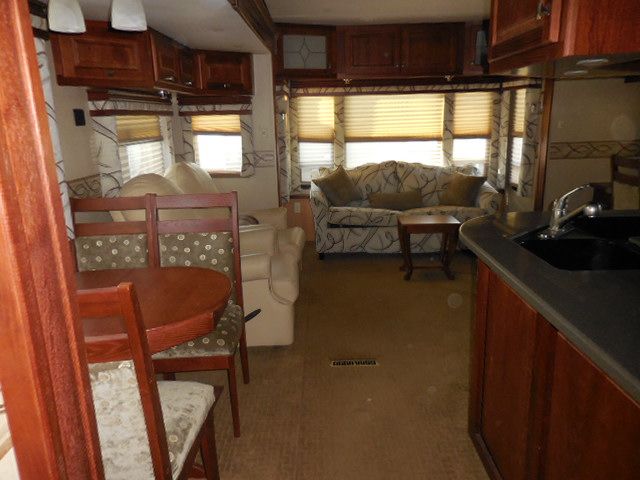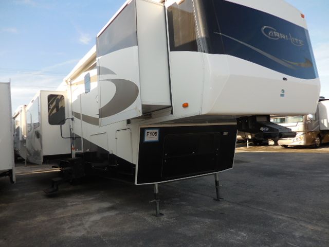 This 2008 Carri-Lite has a Mor Ryde Suspension, Electric Landing Gear, 5 Slide-outs, 2 Ducted Roof A/Cs, 4 Door Refrigerator, In-Fridge Ice Maker, Main Awning, Washer/Dryer, 2 TVs, 2 DVD Players, Outside Shower, Convection Microwave, 2 Burner Range and central vac. A quality built 5th wheel. Perfect home away from home. Let's go RVing!