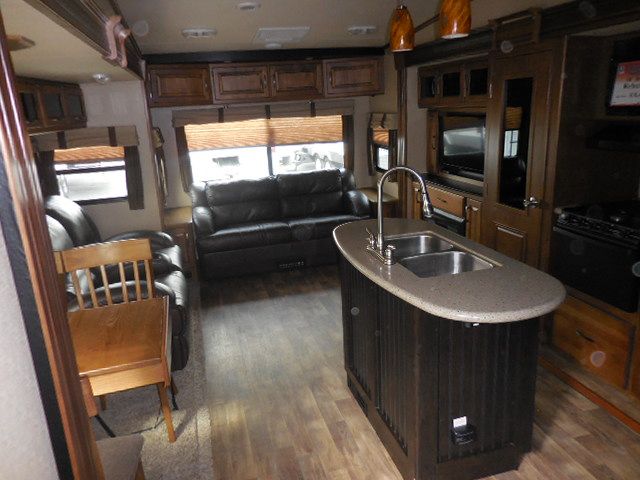 This 2014 Refection By Grand Design has a really nice layout with plenty of storage, Options include....Electric Landing Gear, 3 Slide-outs, 1 Ducted Roof A/C, Double Door Refrigerator, Main Awning, CD Radio, TV, DVD Player, Outside Shower, Microwave, 3 Burner Range, Oven and island kitchen. A quality built fifth wheel thats Perfect home away form home. Let's go RVing
