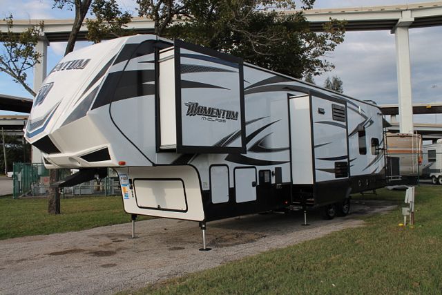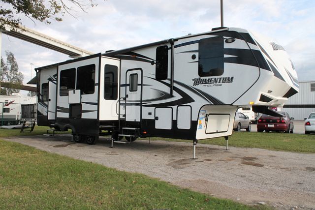 A Must See! This 2015 Momentum Bath and Half By Grand Design. Nearly New Fully Loaded Toyhauler with Trail Air Suspension for a smoother tow experience. Options include....Automatic 6 Point Electric/Hydraulic Landing Gear, 3 Slide-outs, Onan Gas Generator, 3 Ducted Roof A/Cs, Four Door Refrigerator, Main Awning, Washer/Dryer Connections, 2 CD Radios, Heated Tanks, Outside Shower and Speakers, 4 TVs, 2 DVD Players, Microwave, 3 Burner Range and Oven. Also includes Central Vacuum, Fireplace and 2 Tank Fueling Station. Bonus! Floating Patio With Awning and Steps. Plus! Outside Entertainment Center. All This Could Be Yours!