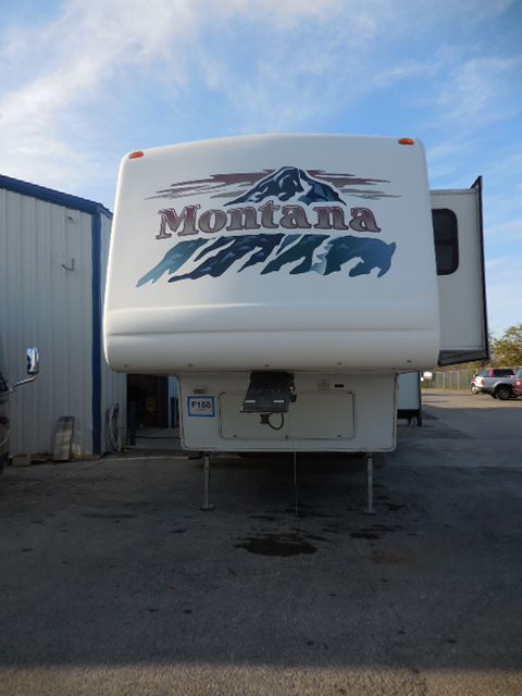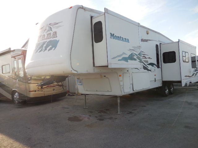 This 2004 Montana By Keystone has an Electric Landing Gear, 3 Slide-outs, 1 Ducted Roof A/C, Double Door Refrigerator, Main Awning, Washer/Dryer Connections, 2 TVs, DVD Player, Outside Shower, Microwave, 3 Burner Range, Oven and freezer in w/d closet. Great rear kitchen floorplan with desk. Let's go RVing..