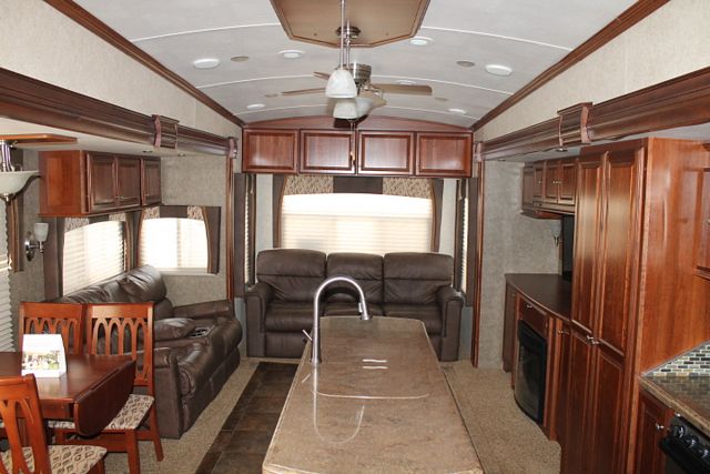 This 2014 Cardinal By Forest River has a Trail Air Suspension for a asmoother tow experience, Options include....Electric Landing Gear, 3 Slide-outs, 2 Ducted Roof A/Cs, Resdiential 3 Door Refrigerator, In-Fridge Ice Maker, Main & Slide Awnings, Washer/Dryer Connections, CD Radio, Heated Tanks, 3 TVs, DVD Player, Outside Shower, Convection Microwave, 3 Burner Range and Oven. Very nice floor plan with all the comforts needed.