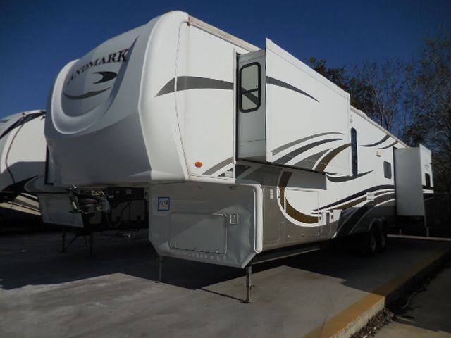 This 2009 Landmark has an Electric Landing Gear, 3 Slide-outs, 2-Ducted Roof A/Cs, 2-Door Refrigerator, In-Fridge Ice Maker, Main Awning, 2 Piece Washer/Dryer, 2 TVs, DVD Player, Convection Microwave, 3 Burner Range, Oven, Ceiling Fan and Fireplace. Perfect unit for those last minute family vacations!