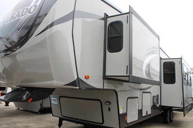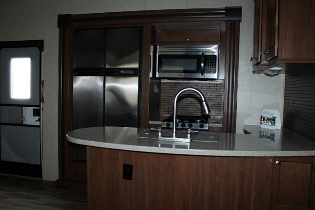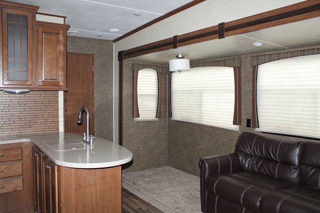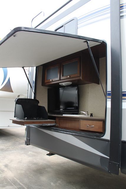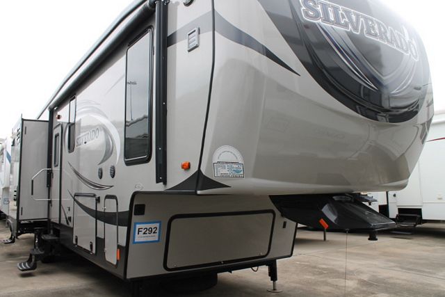 This 2014 Bighorn Silverado By Heartland is a family friendly 5th wheel with a bunkhouse and bath and half. Fabulous features include....Electric Landing Gear, 5 Slide-outs, 2 Ducted Roof A/Cs, Four Door Refrigerator, Main Awning, Washer/Dryer, CD Radio, Heated Tanks, Upgraded Mattress, Fireplace, Outside Shower and Speakers, 3 TVs, DVD Player, Microwave, 3 Burner Range and Oven. Also includes an Outside Entertainment Center and a Complete Outdoor Kitchen. Spending quailty time with family and friends is easy with this wonderful Bighorn.