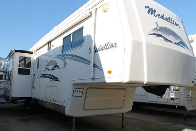 This 2004 Medallion By Mckenzie has lot's of storage Options include....Electric Landing Gear, 4 Slide-outs, 2 Ducted Roof A/Cs, Double Door Refrigerator, Main & Slide Awnings, Washer/Dryer Connections, Heated Tanks, TV, Outside Shower, Convection Microwave, 3 Burner Range and Oven. Nice set up for full time living.