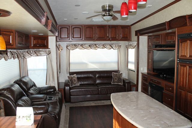 This 2013 Columbus By Palomino has a great floor plan with all the comforts of home and more. It's fabulous. Features include.... Electric Landing Gear, 3 Slide-outs, 2 Ducted Roof A/Cs, Double Door Refrigerator, Main & Slide Awnings, Washer/Dryer Connections, CD Radio, Heated Tanks, Outside Speakers, TV, DVD Player, Outside Shower, Convection Microwave, 3 Burner Range and Oven. Nice 5th wheel that was designed with comfort in mind.