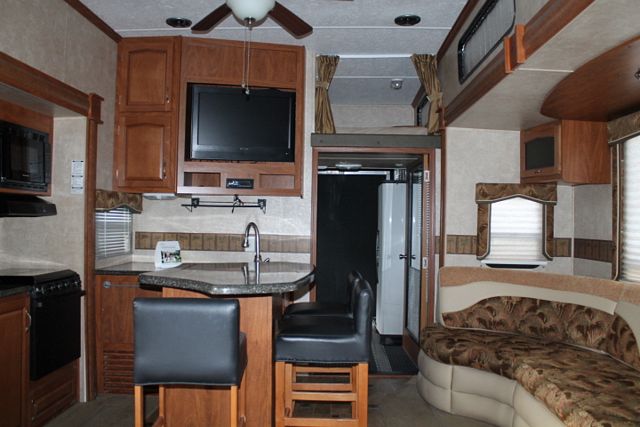 This 2009 Raptor Velocity By Keystone has a very spacious floor plan that sleeps 8 adults, Options include....Electric Landing Gear, 3 Slide-outs, Onan Gas Generator, 2 Ducted Roof A/Cs, Double Door Refrigerator, Main & Slide Awnings, Washer/Dryer Connections, CD Radio, Outside Shower and Speakers, 3 TVs, DVD Player, Microwave, 3 Burner Range and Oven. Escape the ordinary and relax with family and friends.