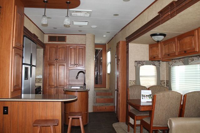 This 2011 Bighorn By Heartland has all the comforts of home. Features include.... Electric Landing Gear, 4 Slide-outs, Onan Propane Generator, 2 Roof A/Cs, Four Door Refrigerator, Main Awning, 2 Piece Washer/Dryer, CD Radio, DVD Player, Outside Shower, Microwave, 3 Burner Range and Oven. Get out and go Camping!