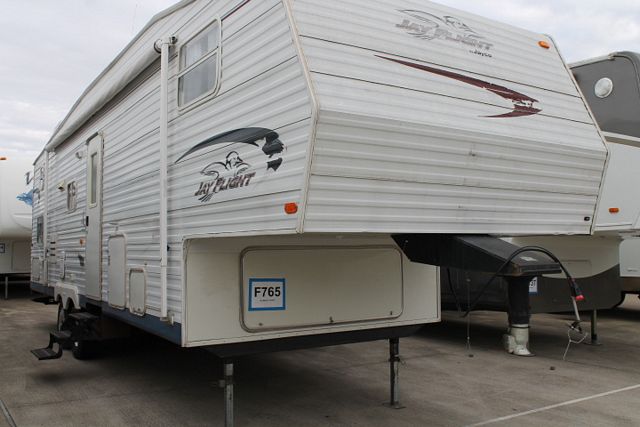 Well Cared For 5th Wheel. This 2005 Jay Flight Bunkhouse By Jayco that sleeps up to 9 and has a fresh coat of paint inside. Features include....1 Slide-out, 1 Ducted Roof A/C, Double Door Refrigerator, Main Awning, TV, Outside Shower, Microwave, 3 Burner Range and Oven. Interior very is clean and inviting. Don't miss out on seeing this nice 5th wheel.