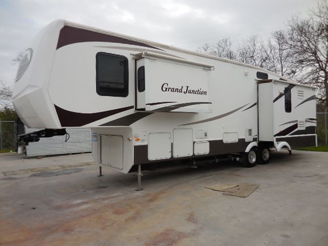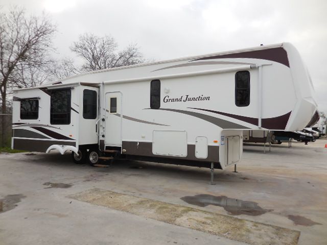 This 2008 Grand Junction has an Electric Landing Gear, 3 Slide-outs, 2-Ducted Roof A/Cs, 2-Door Refrigerator, Main & Slide Awnings, Washer/Dryer Connections, 2 TVs, 2 DVD Players, Outside Shower, Convection Microwave, 3 Burner Range, Oven, Ceiling Fan, Fireplace & Eureka Central Vac. Perfect RV for your next weekend getaway! All the benefits of home no matter where you are!