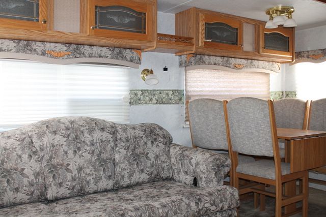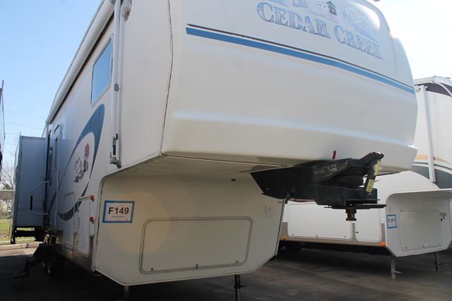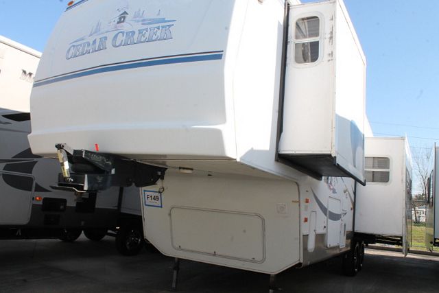 This 2003 Cedar Creek By Forest River has a nice layout thats great for all of your camping needs. Options include....Trailair Suspension, Electric Landing Gear, 3 Slide-outs, 2 Ducted Roof A/Cs, Double Door Refrigerator, Main Awning, Washer/Dryer Connections, CD Radio, 2 TVs, 2 DVD Players, Outside Shower, Microwave, 3 Burner Range and Oven. Plenty of privacy in the bedroom and bathroom with lot's of storage space. Stop by and take a look!