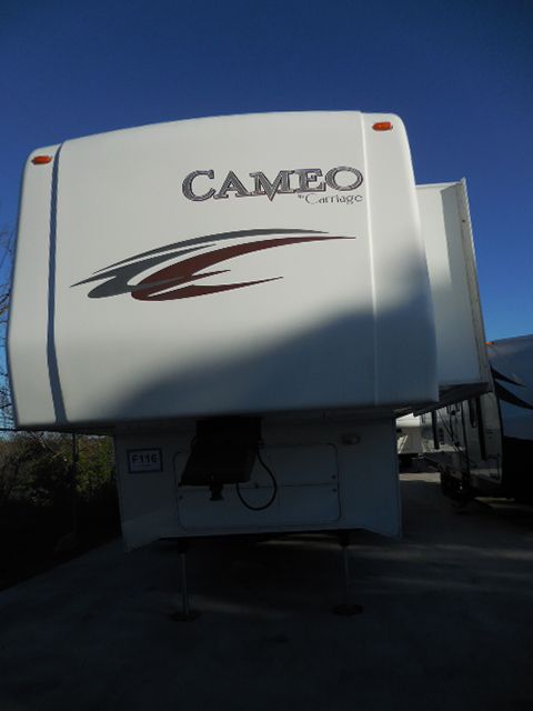This 2011 Carriage Cameo has an Electric Landing Gear, 3 Slide-outs, 2 Ducted Roof A/Cs, Four Door Refrigerator, Main Awning, Washer/Dryer Connections, 2 TVs, DVD Player, Outside Shower, Convection Microwave, 3 Burner Range, Oven, Theater Seating Recliners. Enjoy all the comforts of home while on the road. Let's go RVing!