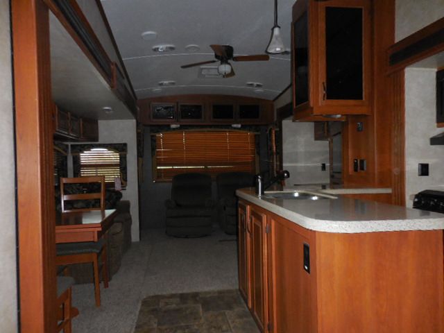 This 2013 Montana High Country has an Electric Landing Gear, 4 Slide-outs, 2 Ducted Roof A/Cs, 4 Door Refrigerator, Main Awning, Washer/Dryer Connections, CD Radio, Outside Speakers, 2 TVs, DVD Player, Outside Shower, Microwave, 3 Burner Range, Oven and faux wooo blinds. Enjoy all the comforts of home while on the road. Let's go RVing!