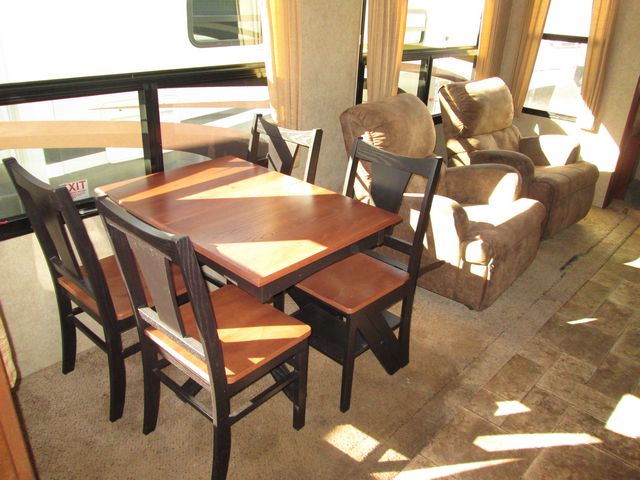 ....Electric Landing Gear, 4 Slide-outs, 2 Ducted Roof A/Cs, 4 Refrigerator, with Ice Maker, Electric Main Awning, Slide Awning, Washer/Dryer Connections, Fireplace, Ceiling fan, CD Radio, 2 TVs, DVD Player, Outside Shower, Microwave, 3 Burner Range and Oven. Nice 5th Wheel with and An Island style kitchen and a King size bed for a great nights rest.