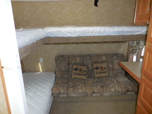 This 2006 Wildcat By Forest River has an Electric Landing Gear, 2 Slide-outs, 1 Ducted Roof A/C, Double Door Refrigerator, Main Awning, CD Radio, Outside Speakers, TV, DVD Player, Outside Shower, Microwave, 3 Burner Range, Oven and roof replaced Fall 2014. Great bunkhouse floorplan for families. Let's go RVing.