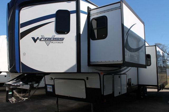 Wow! Nice Design on 2013 V-Cross Platinum Series By Forest River. Wonderfully laid out with it's front V-Closet and Rear Kitchen. Features include....Electric Landing Gear, 2 Slide-outs, 2 Roof A/Cs, Double Door Refrigerator, Main Awning, CD Radio, Outside Shower and Speakers, TV, DVD Player, Microwave, 3 Burner Range and Oven. Has a Very Comfortable living space and A King Size Bed that add to your traveling Comforts. Your not going to want to miss seeing this V-Cross so Stop by today!
