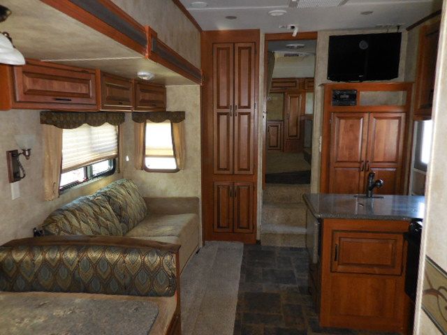 Bunkhouse/Bath and half floor plan! This 2013 Laredo By Keystone has an Electric Landing Gear, 3 Slide-outs, 2-Ducted Roof A/Cs, 2-Door Refrigerator, Main Awning, CD Radio, TV, DVD Player, Therma Shield, Comfort Zone, Outside Shower, Microwave, 3 Burner Range, Oven. Make your next trip a pleasurable one! Family friendly and great for last minute trips!