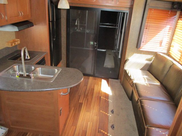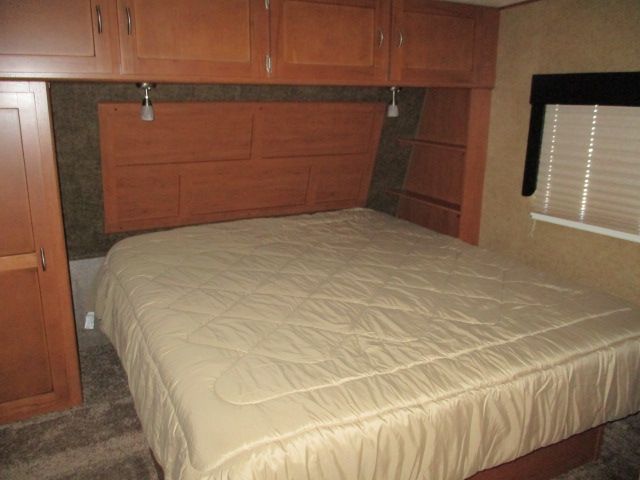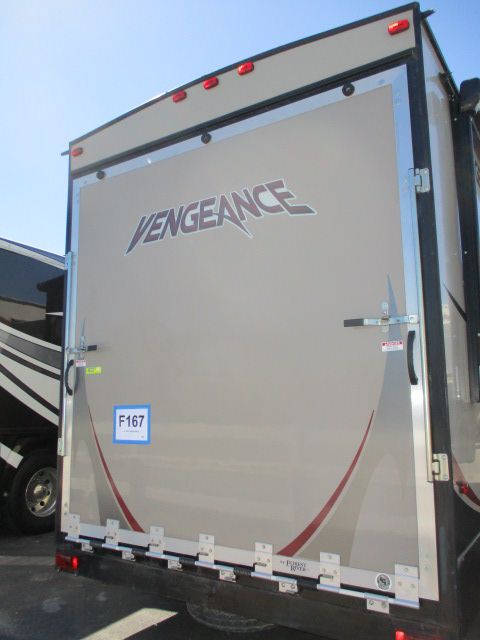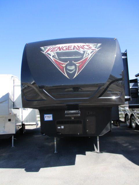 This 2013 Vengeance has an Electric Landing Gear, 2 Slide-outs, 2 Ducted Roof A/Cs, Double Door Refrigerator, In-Fridge Ice Maker, Main Awning, Washer/Dryer Connections, CD Radio, Outside Speakers, TV, DVD Player, Outside Shower, Convection Microwave, 3 Burner Range and 10 foot garage. Perfect toyhauler for the family. Let's go RVing!