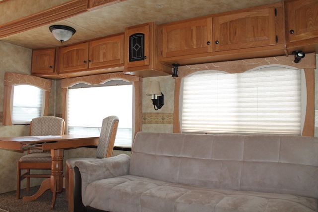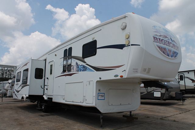 This 2008 Bighorn By Heartland is a great full time Living 5th wheel. Options include....Electric Landing Gear, 4 Slide-outs, 2 Roof A/Cs, Double Door Refrigerator, Main Awning, Washer/Dryer Connections, Satellite Dish, DVD Player, Outside Shower, Convection Microwave, 3 Burner Range and Oven. Nice roomy floor plan thats includes a King Size Bed for a great nights rest.